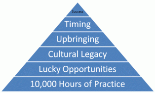 Malcolm Gladwell’e göre başarı, kesinlikle bireysel değil, ancak doğru şartlar bir araya geldiğinde oluşabiliyor. Bu şartların pek çoğu ise kişinin elinde değil. Olsa olsa kişi, o başarıyı hazırlayan şartların içine doğuyor. Gladwell bu şartları temelde zaman, toplum ve bu çerçevede ele alınabilecek olan imkanlar ya da şanslar olarak tanımlıyor.